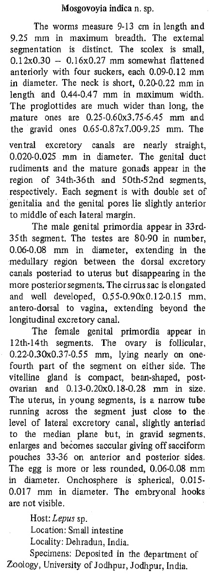 Nama, H. S. 1980. On a new species of Mosgovoyia from the hare, Lepus sp. (Cestoda: Anoplocephalidae). Revista Brasileira de Biologia 40: 689-691. (5579) Download PDF |