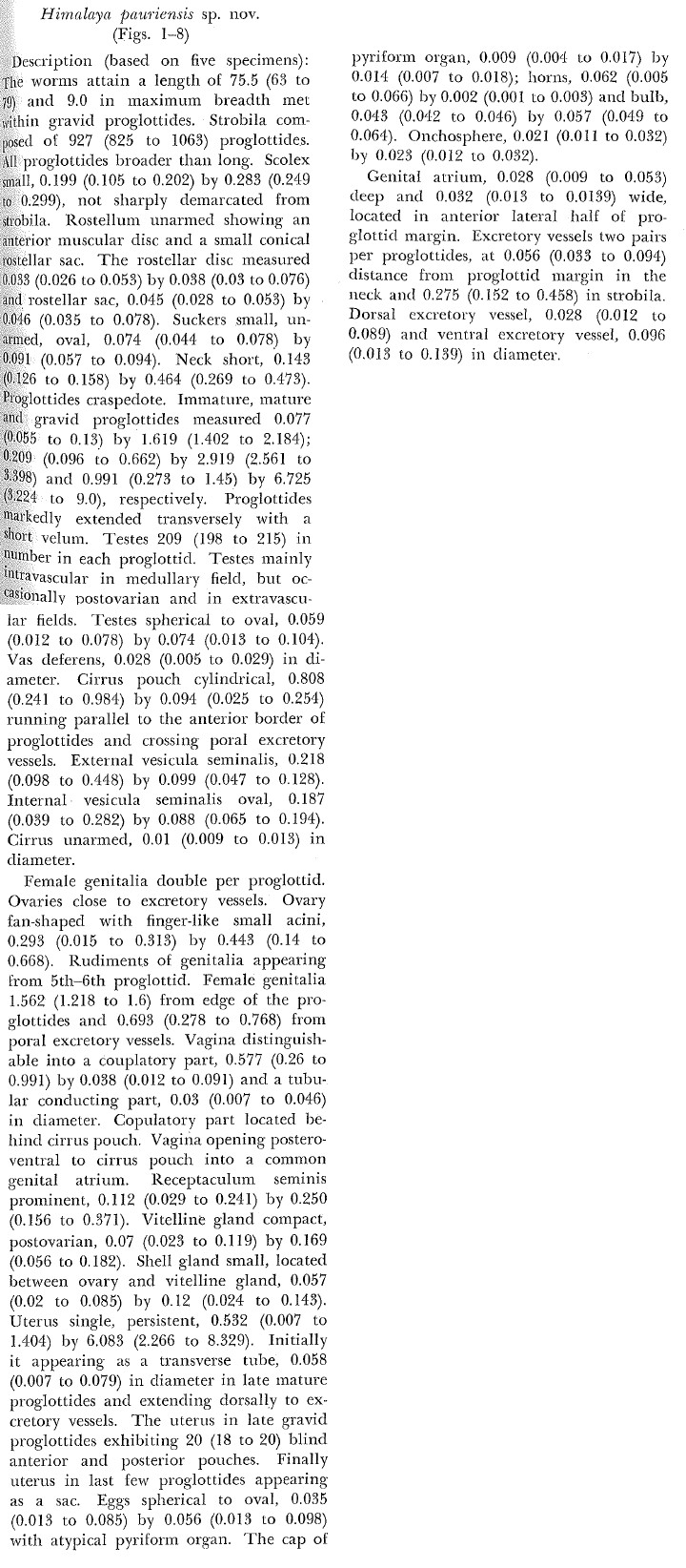 Malhotra, S. K., I. Sawada, and V. N. Capoor. 1983. Himalaya pauriensis gen. et sp. nov., as a representative of the family Himalayidae nov. with a revised definition of the order Anoplocephalidea. Japanese Journal of Parasitology 32: 211-217. (5459) Download PDF |