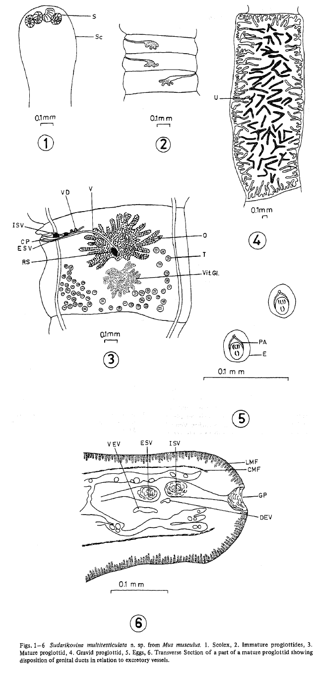 Malhotra, S. & and S. Nanda. 1988. Sudarikovina multitesticulata n. sp. (Cestoidea: Cyclophyllida) from Mus musculus of Allahabad, India. Japanese Journal of Parasitology 37: 376-379. (5411) Download PDF |