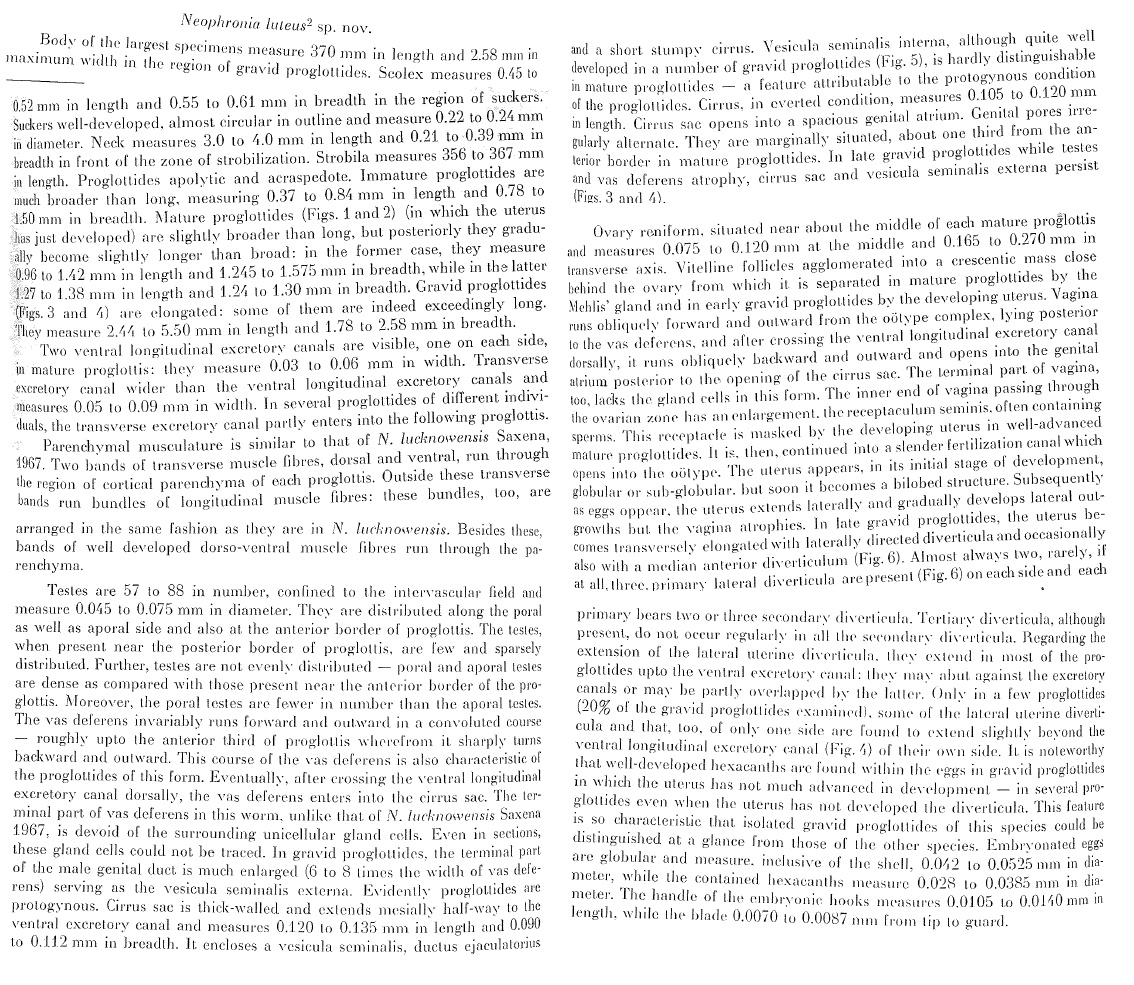 Saxena, S. K. 1968. Studies on cestodes of the common Indian vulture, Neophron percnopterus (Linn.) II. On the morphology of Neophronia luteus sp. nov. Zoologischer Anzeiger 180: 328-335. (5510) Download PDF |