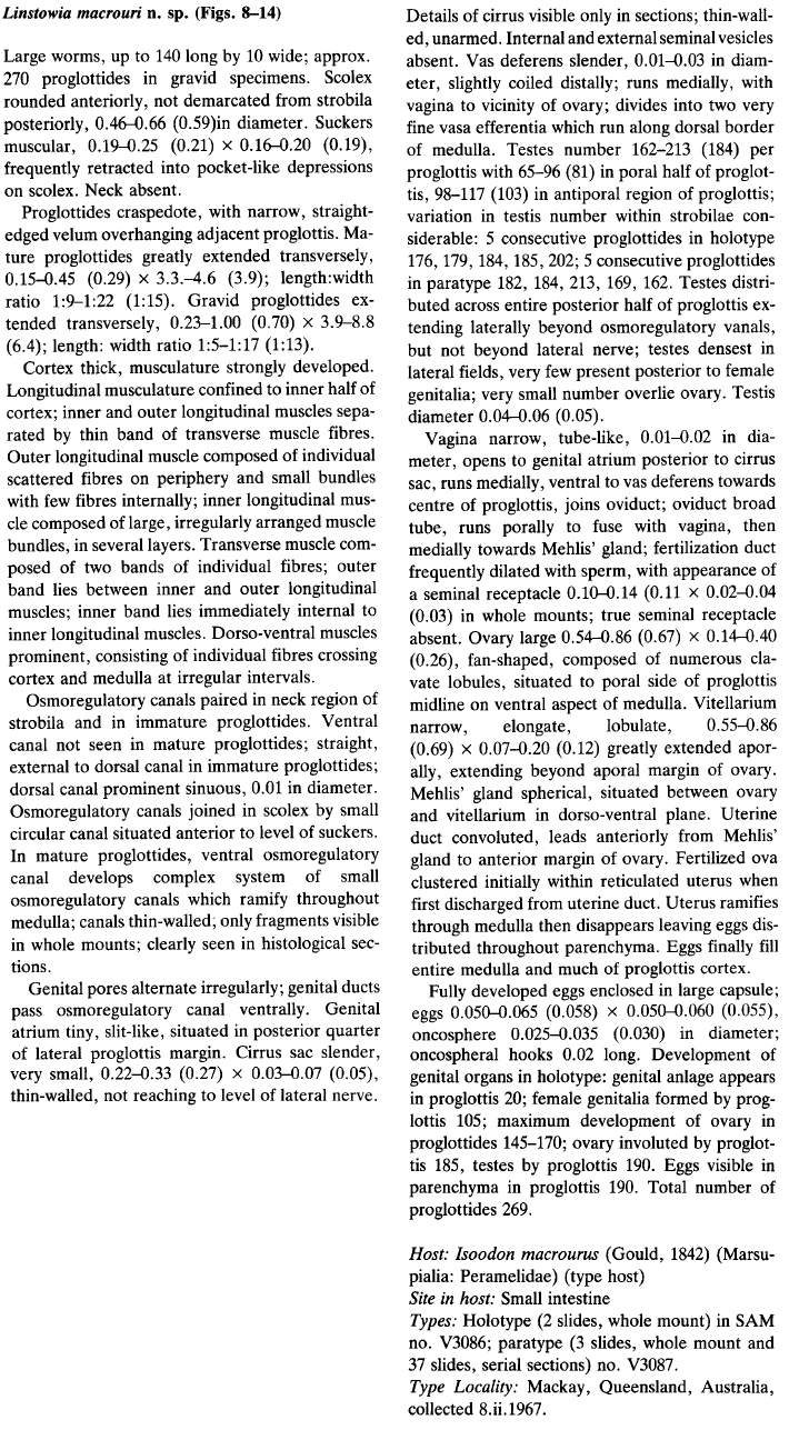 | Type Material | Holotype (2 slides, whole mount) in SAMA no. V3086; paratype (3 slides, whole mount and 37 slides, serial sections) no. V3087. |