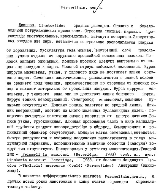 Beveridge, I. 1983. The genus Linstowia Zschokke, 1899 (Cestoda: Anoplocephalidae) in Australian mammals with the description of a new species, L. macrouri. Systematic Parasitology 5: 291-304. (4694) Download PDFSpasskii, A. A. 1987. [The recent genera of Linstowiidae] Recentnye pody linstoviicnyh sepnej. In [Parasites and parasite coenoses of animals and plants of the Dniester-Prut inter-river region] Parazity i parazitotsenozy zhivotnykh i rastenii dnestrovsko-prutskogo mezhdurechya, Spasskii, A. A. Shtiintsa, Kishinev, 3-27 pp. (5658) Download PDF |