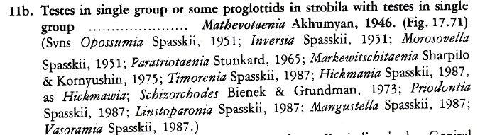 Spasskii, A. A. 1987. [The recent genera of Linstowiidae] Recentnye pody linstoviicnyh sepnej. In [Parasites and parasite coenoses of animals and plants of the Dniester-Prut inter-river region] Parazity i parazitotsenozy zhivotnykh i rastenii dnestrovsko-prutskogo mezhdurechya, Spasskii, A. A. Shtiintsa, Kishinev, 3-27 pp. (5658) Download PDFBeveridge, I. 1994. Family Anoplocephalidae Cholodkovsky, 1902. Keys to the Cestode Parasites of Vertebrates. : 315-366. (4599) Download PDF |