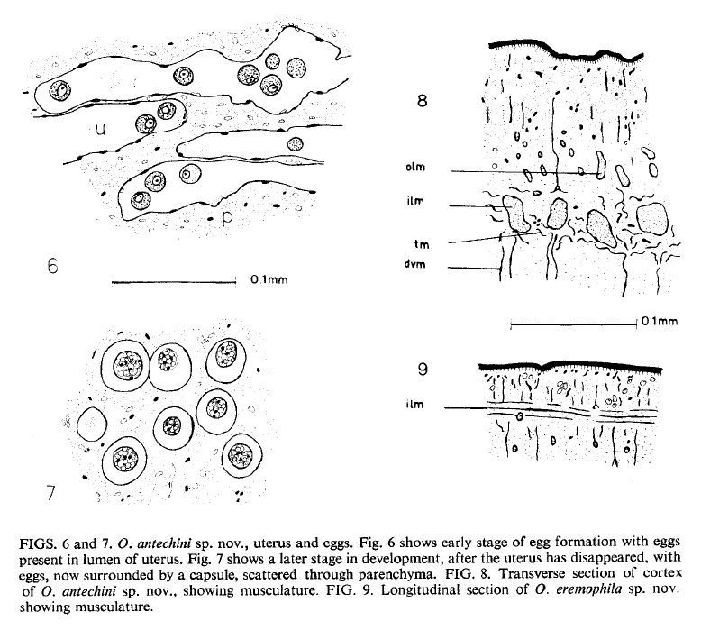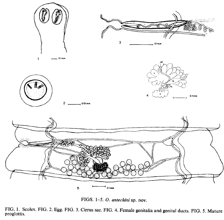 Beveridge, I. 1977. On two new linstowiid cestodes from Australian dasyurid marsupials. Journal of Helminthology 51: 31-40.