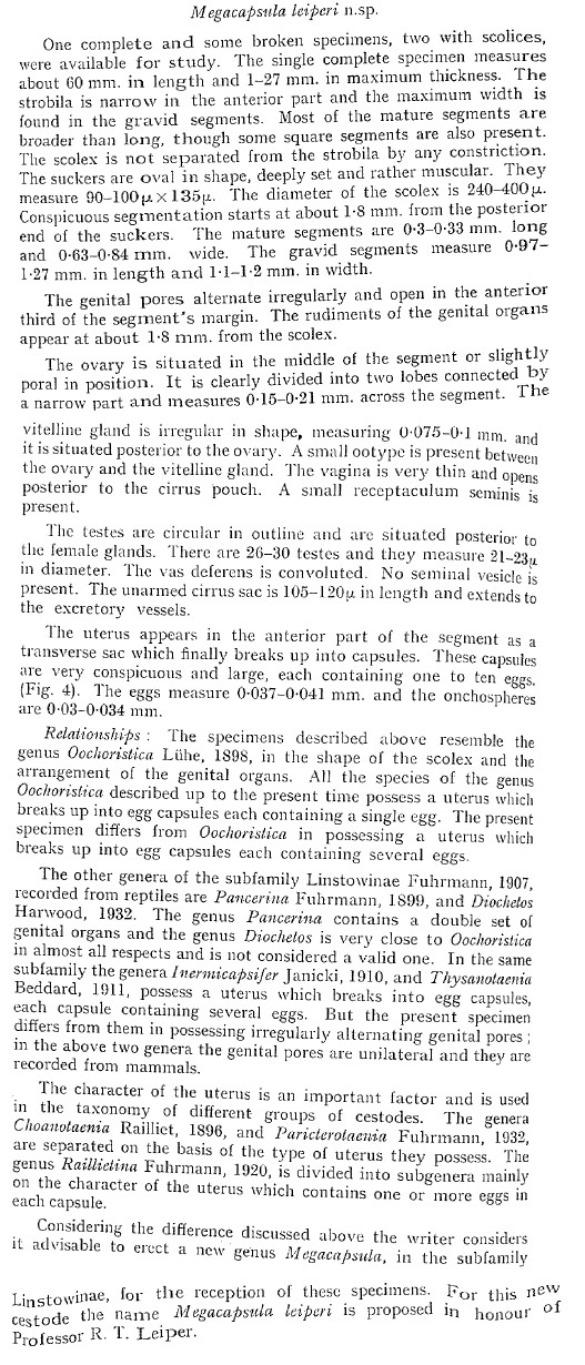 | Valid Name | Oochoristica leiperi (Wahid, 1961) Beveridge, 1994 |