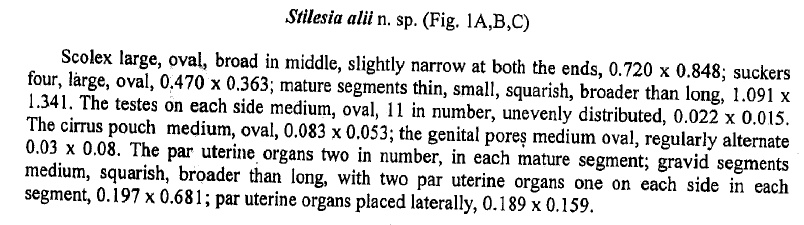 | Scientific Name Notes | Probably a junior synonym of Stilesia globipunctata (Rivolta, 1874) Railliet, 1893. |