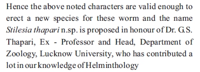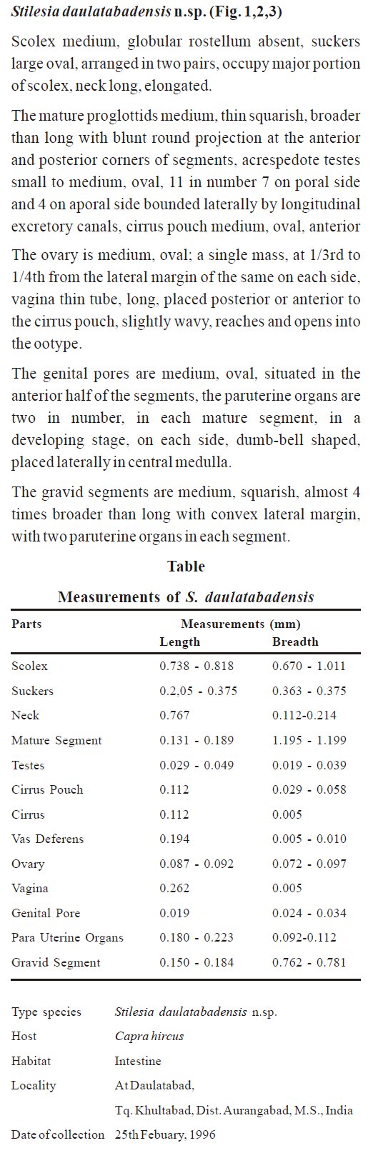 | Scientific Name Notes | Shelke & Shinde (2004) proposed two different names for the same parasite. Of these, Stilesia daulatabadensis has page precedence. |