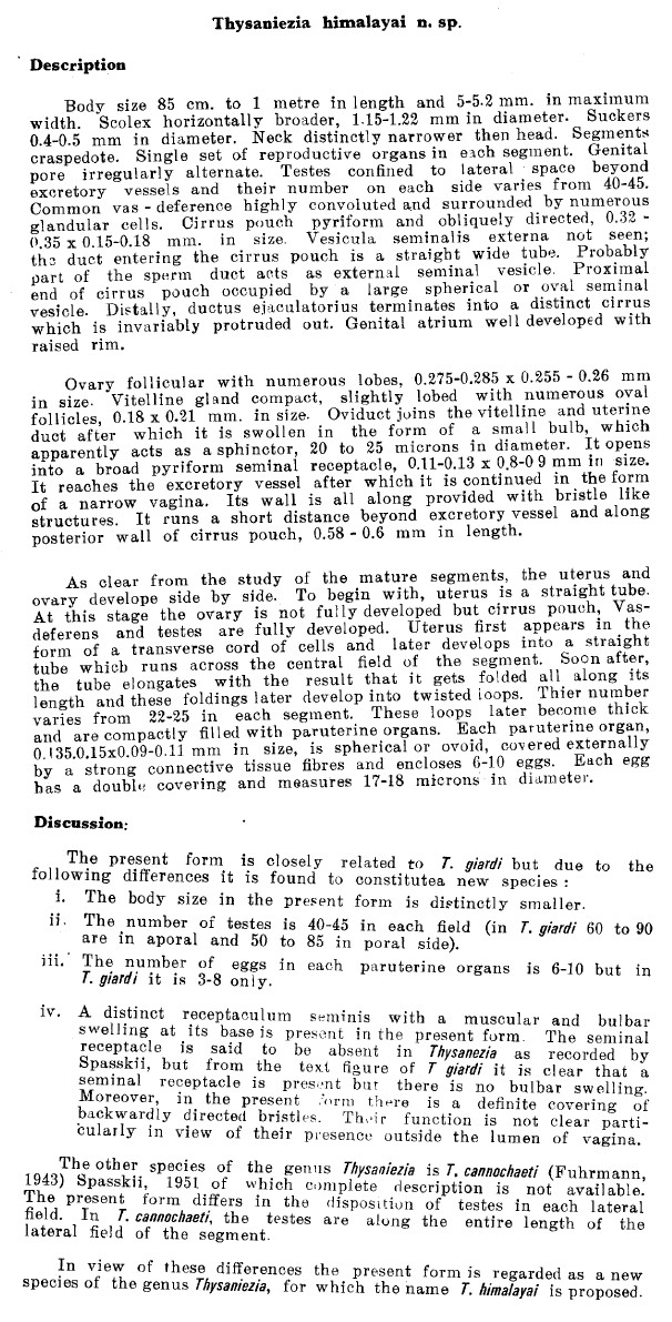 Fotedar, D. N. and N. Bambroo. 1977. On a new species of cestode genus Thysaniezia Skrjabin, 1926, from local sheep in Kashmir. Journal of Science University of Kashmir 3: 105-108. (5204) Download PDF |