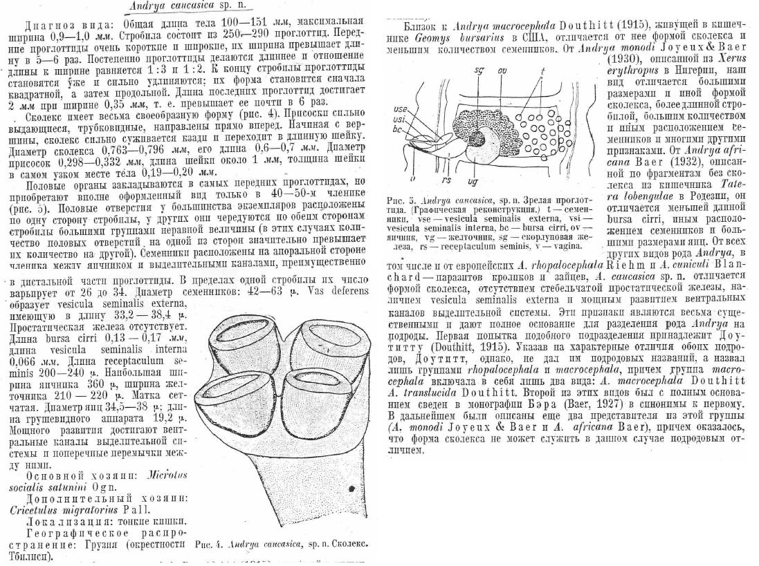 Kirshenblat, Ya. D. 1938. Zakonomernosti dinamiky parazitofauni myschevidnyh gryzunov. Izdanie Lenindgradskogo Gosudarstvennogo Universiteta : pp 92. (4635) Download PDFTenora, F., É. Murai, and C. Vaucher. 1984. On Anoplocephalidae (Cestoda), parasitizing Rodentia and Lagomorpha in Europe. Parasitologica Hungarica 17: 51-57. (4629) Download PDF |