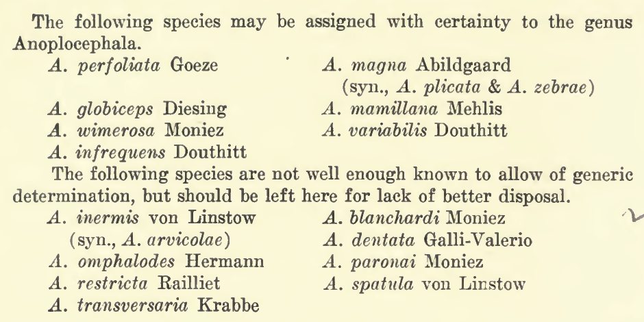| Genus | Anoplocephala |