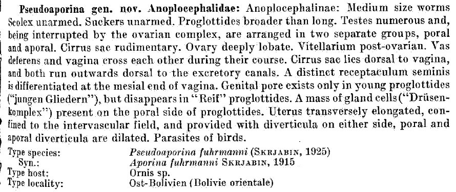 | Type Species | Pseudoaporina fuhrmanni (Skryabin, 1915) Saxena & Baugh, 1973 |