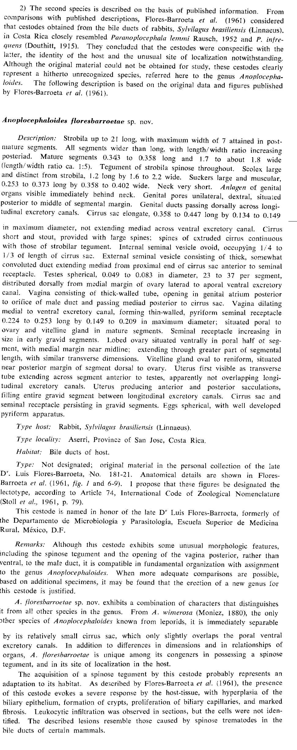Flores-Barroeta, L, E. Hidalgo-Escalente, and F. Montero-Gei. 1961. Céstodos de Vertebrados. VIII. Revista de Biologia Tropical 9: 187-207. (4765) Download PDFRausch, R. L. 1976. The genera Paranoplocephala Lühe, 1910 and Anoplocephaloides Baer, 1923 (Cestoda: Anoplocephalidae), with particular reference to species in rodents. Annales de Parasitologie Humaine et Comparée 51: 513-562. (4624) Download PDF |