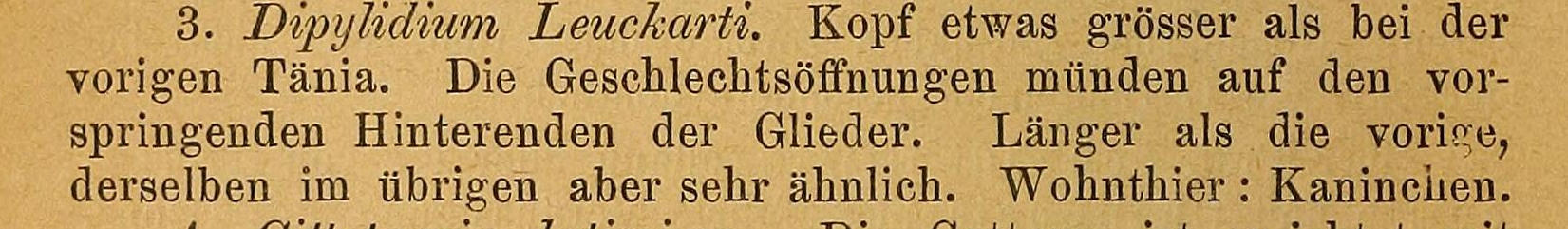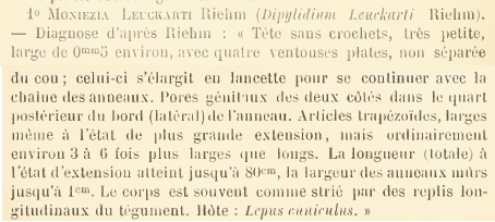 Riehm, G. 1881. Studien an Cestoden. Zeitscrift für die Gesammten Naturwissenschaften. Originalabhandlungen und Berichte 54: 545-610. (4904) Download PDFBlanchard, R. 1891. Notices helminthologiques (deuxième série). Mémoires de la Société Zoologique de France 4: 420-466. (4633) Download PDF |