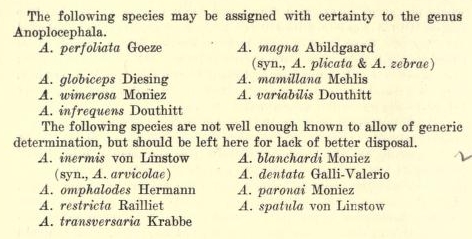 | Scientific Name Notes | Taenia arvicolae Blanchard, 1891 is a replacement name for Taenia inermis Linstow, 1878. |