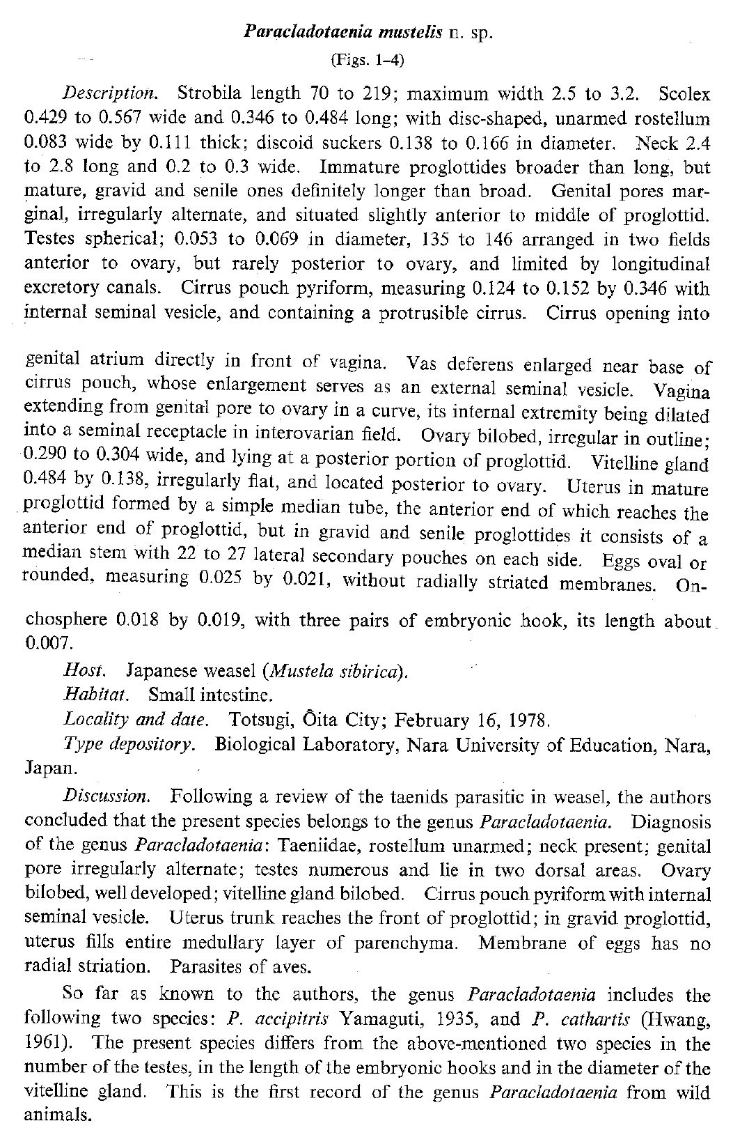 | Genus | Paracladotaenia |