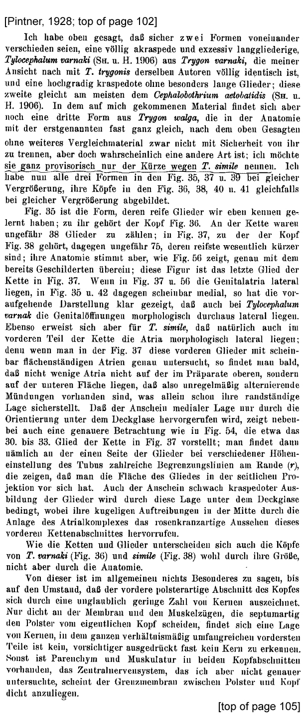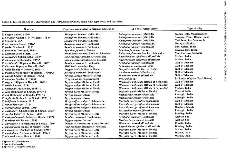 Pintner, T. 1928. Die sog. Gamobothriidae, Linton, 1899. (partial translation by I. Schwink). Zoologische Jahrbücher, Abteilung für Anatomie und Ontogenie der Tiere 50: 55-116. (345) Download PDFIvanov, V. A. and R. A. Campbell. 2000. Emendation of the generic diagnosis of Tylocephalum (Cestoda: Lecanicephalidea: Tetragonocephalidae), and description of Tylocephalum brooksi n. sp.. Journal of Parasitology 86: 1085-1092. (3849) Download PDF |
