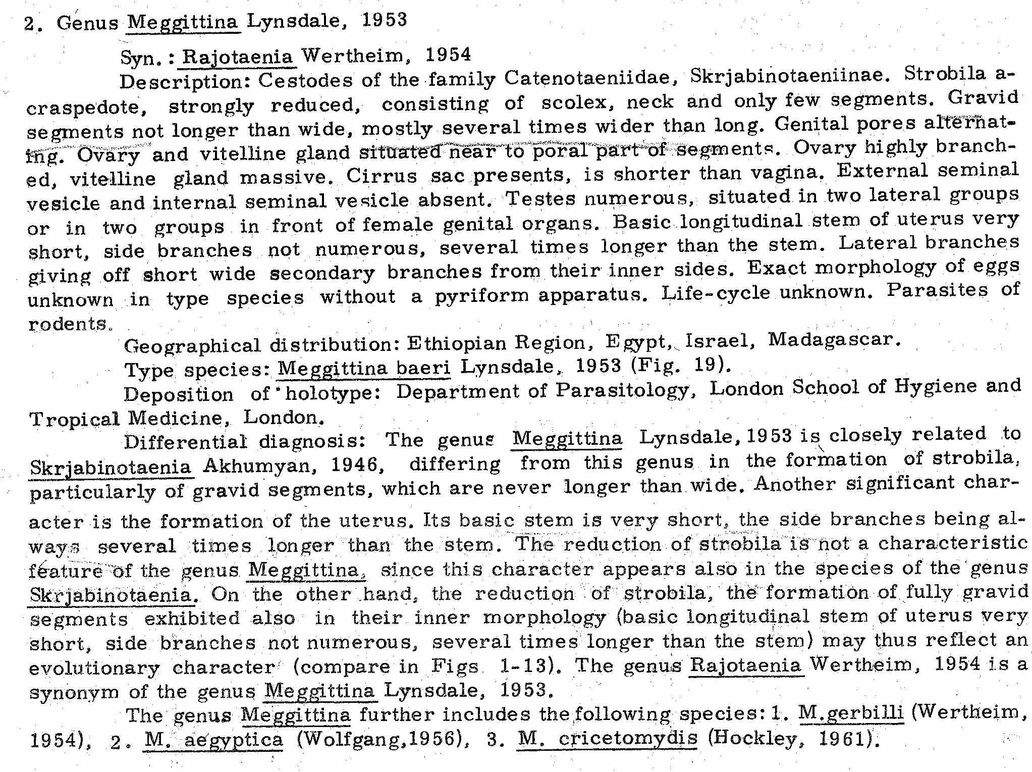 | Valid Name | Meggittina gerbilli (Wertheim, 1954) Tenora, Mas-Coma, Murai & Feliu, 1980 |