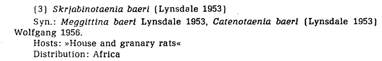 Synonyms Catenotaenia baeri (Lynsdale, 1953) Wolfgang, 1956