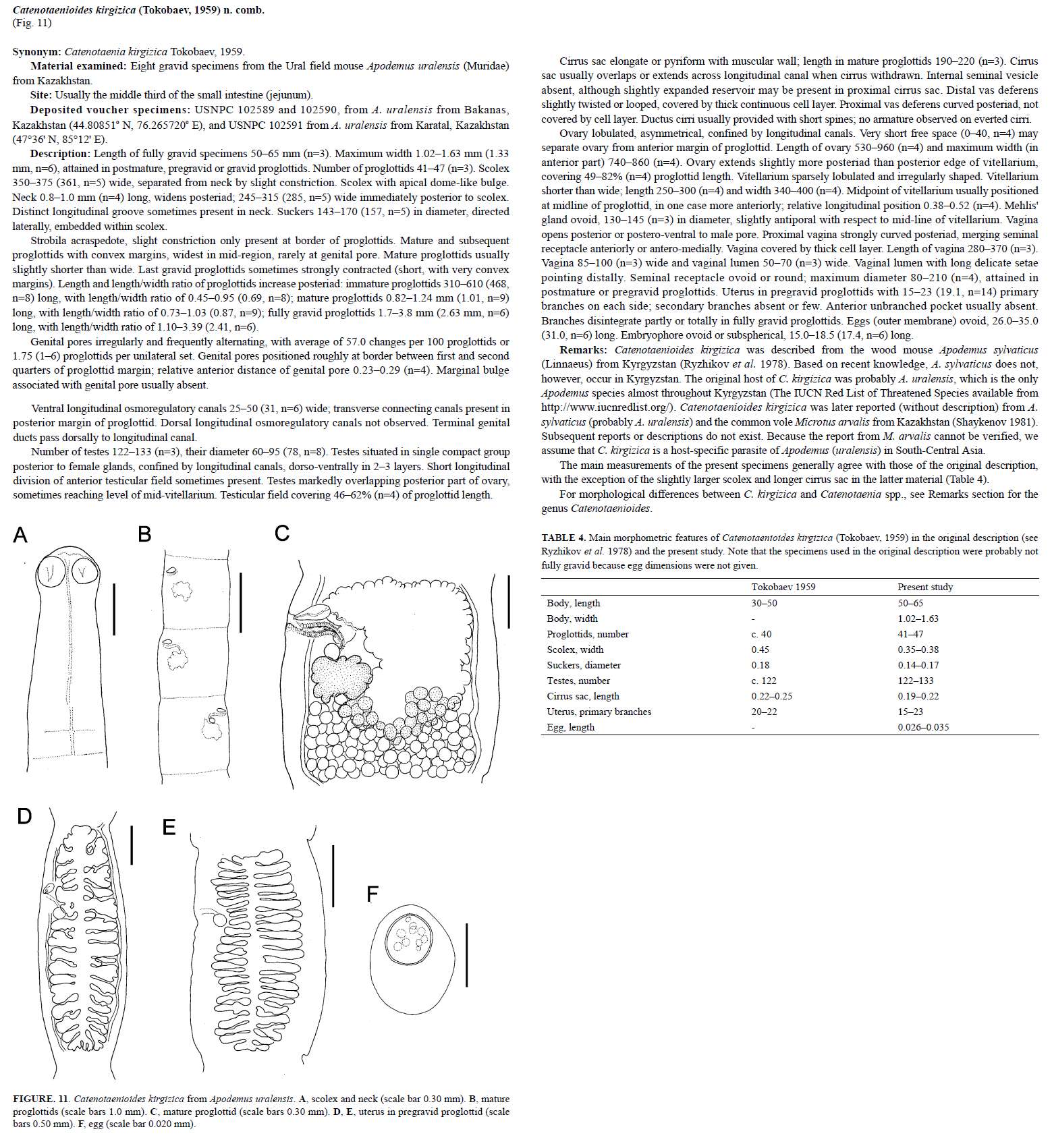 | Valid Name | Catenotaenioides kirgizica (Tokobaev, 1959) Haukisalmi, Hardman & Henttonen, 2010 |