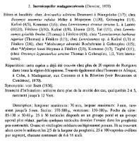 Davaine, C. J. 1870. Examen microscopique du Taenia recueilli a Mayotte. Comptes Rendus des Séances et Mémoires de la Société de Biologie 21: 236-240. (5207)Baer, J. G. 1956. The taxonomic position of Taenia madagascariensis Davaine, 1870, a tapeworm parasite of man and rodents. Annals of Tropical Medicine and Parasitology 50: 152-156. (5206) Download PDF |