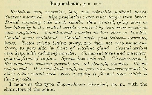 | Type Species | Eugonodaeum oedicnemi Beddard, 1913 |