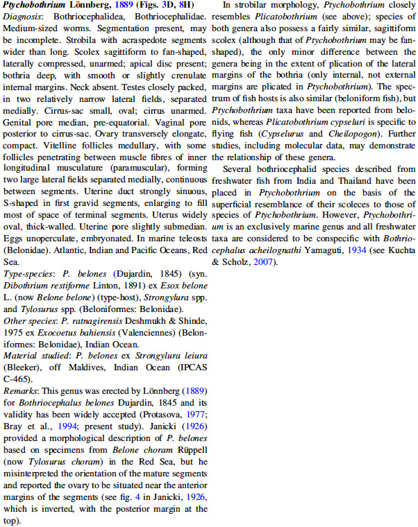 | Type Species | Ptychobothrium belones (Dujardin, 1845) Lönnberg, 1889 |