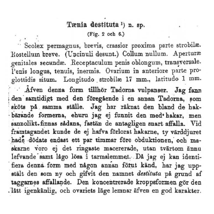 Lönnberg, E. 1889. Bidrag till kännedomen om i Sverige förekommande cestoder. Bihang till Kongliga Svanska Vetenskaps-Akademiens Handlingar 14: 1-69. (285) Download PDF |