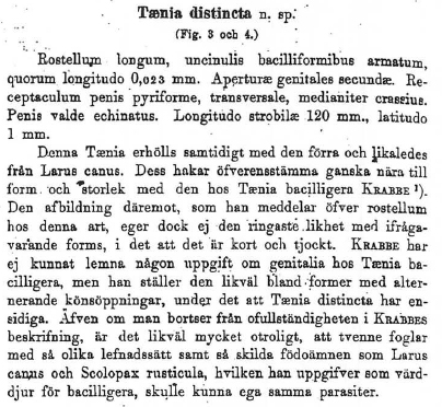 Lönnberg, E. 1889. Bidrag till kännedomen om i Sverige förekommande cestoder. Bihang till Kongliga Svanska Vetenskaps-Akademiens Handlingar 14: 1-69. (285) Download PDF |