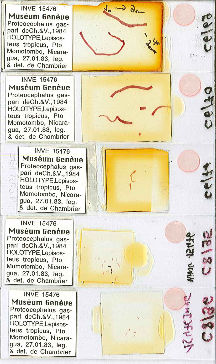 de Chambrier, A. and C. Vaucher. 1984. Proteocephalus gaspari n. sp. (Cestoda: Proteocephlalidae), pareasite de Lepisosteus tropicus (Gill) au Lac Managua (Nicaragua) . Revue Suisse de Zoologie 91: 229-233. (3913) Download PDF |