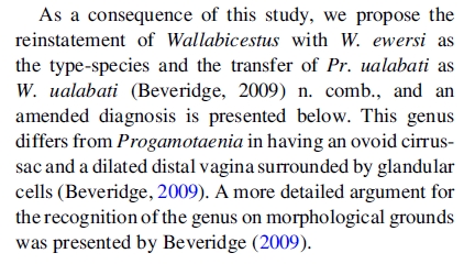 | Synonyms | Progamotaenia ualabati Beveridge, 2009 |