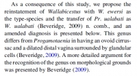 Beveridge, I. 2009. A re-description of Progamotaenia ewersi (Schmidt, 1975) (Cestoda: Anoplocephalidae) from wallabies and kangaroos (Macropodidae), with the description of a new species, P. ualabati n. sp. Transactions of the Royal Society of South Australia 133: 1-17. (4682) Download PDFHardman, L. M., V. Haukisalmi, and I. Beveridge. 2012. Phylogenetic relationships of the anoplocephaline cestodes of Australasian marsupials and resurrection of the genus Wallabicestus Schmidt, 1975. Systematic Parasitology 82: 49-63. (5694) Download PDF |