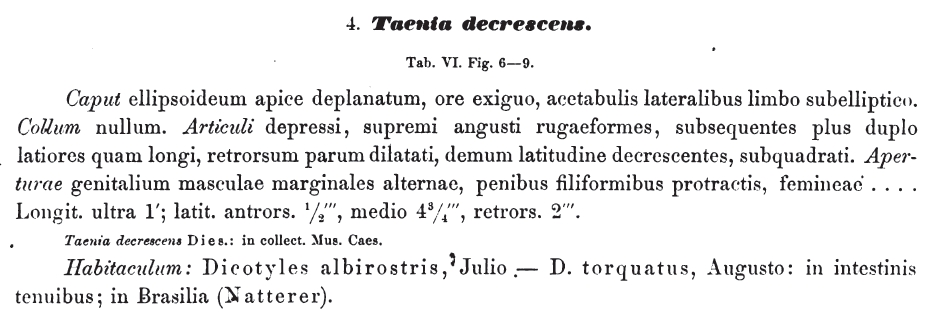 Diesing, K. M. 1856. Zwanzig Arten von Cephalocotyleen. Denkschriften der Kaiserlichen Akademie der Wissenschaften. Matematisch-Naturwissenschaftliche classe 12: 23-38. (4967) Download PDFSpasskii, A. A. 1999. [Taxonomical analysis of the combined genus Monoecocestus (Cestoda, Anoplocephalidae)] Taksonomicheskij analiz sbornogo roda Monoecocestus (Cestoda, Anoplocephalidae). Vestnik Zoologii 33: 7-12. (5696) Download PDF |