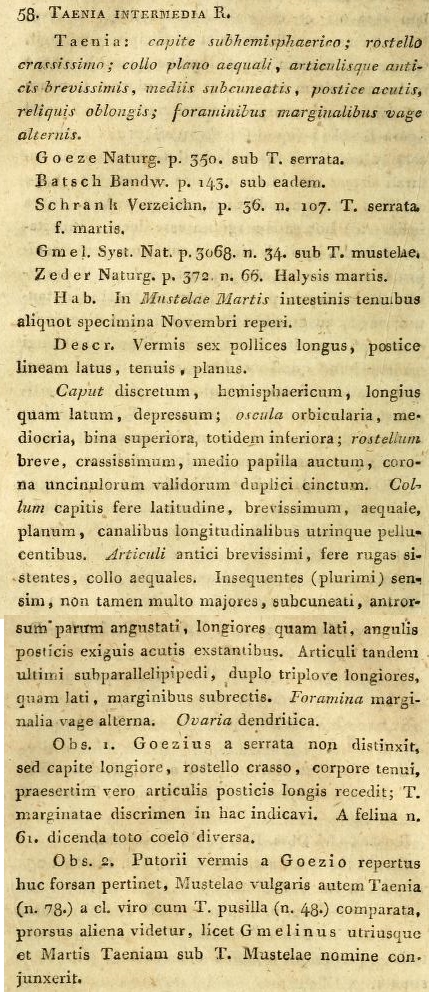 | Valid Name | Taenia martis (Zeder, 1803) Freeman, 1956 |