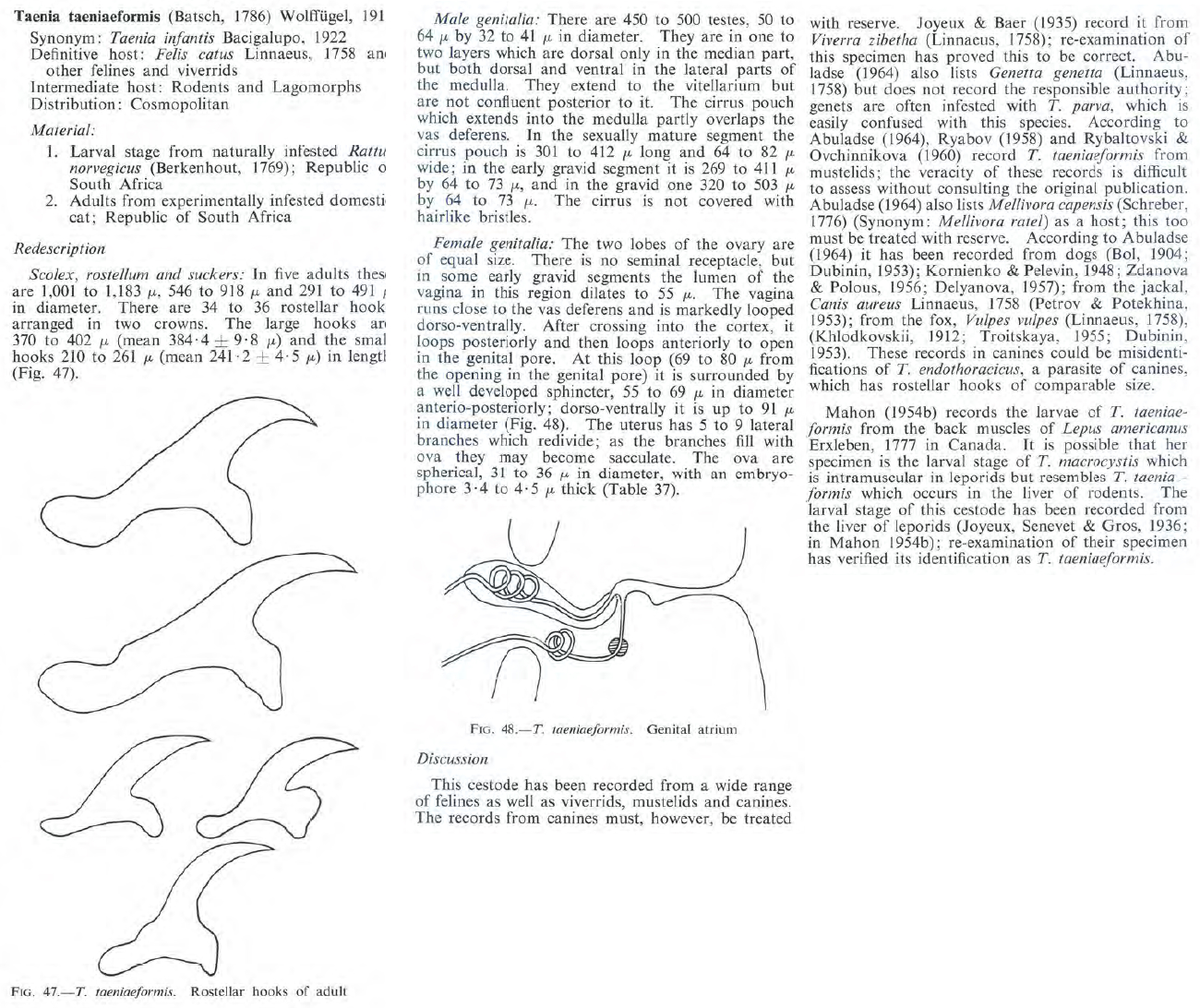 Verster, A. 1969. A taxonomic revision of the genus Taenia Linnaeus, 1758 s. str. Onderstepoort Journal of Veterinary Research 36: 3-58. (5737) Download PDF |