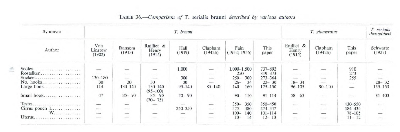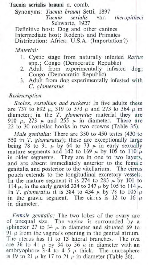 | Synonyms | Taenia serialis var. theropitheci Schwartz, 1927 |