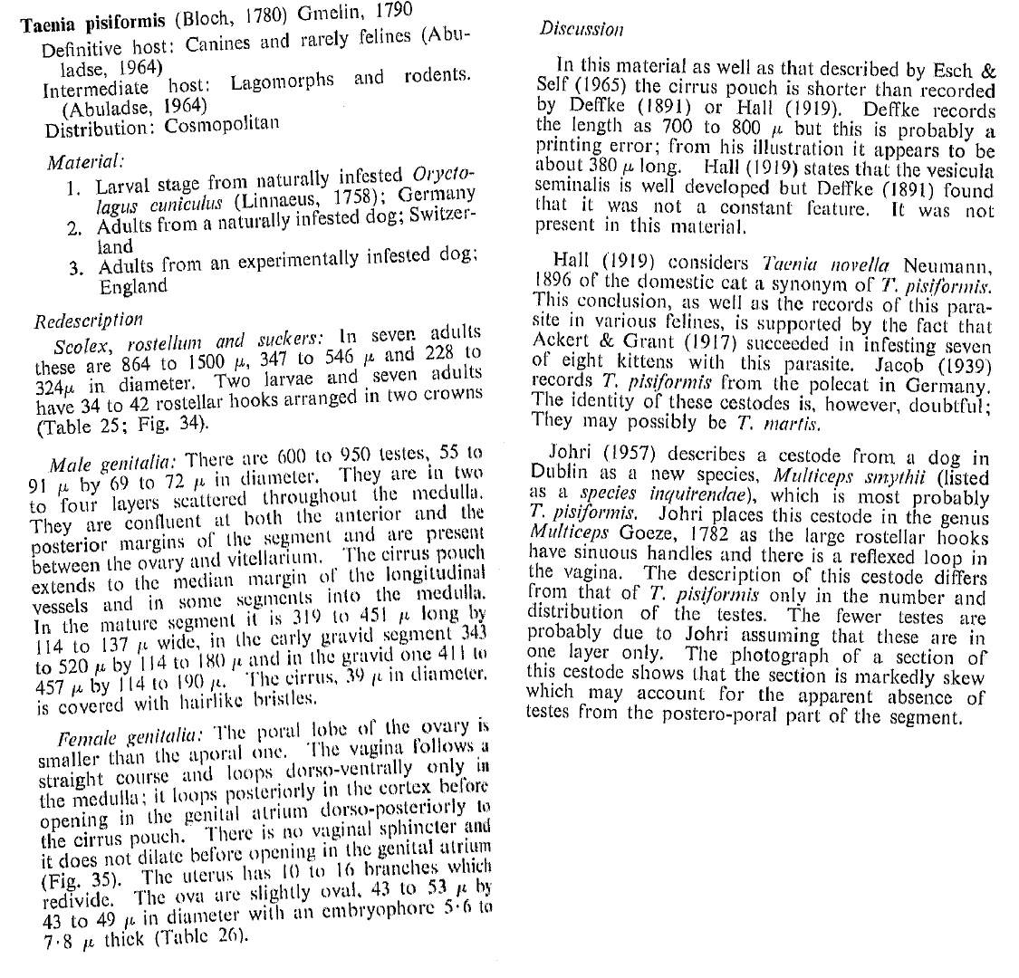 | Valid Name | Taenia pisiformis (Bloch, 1780) Gmelin, 1790 |