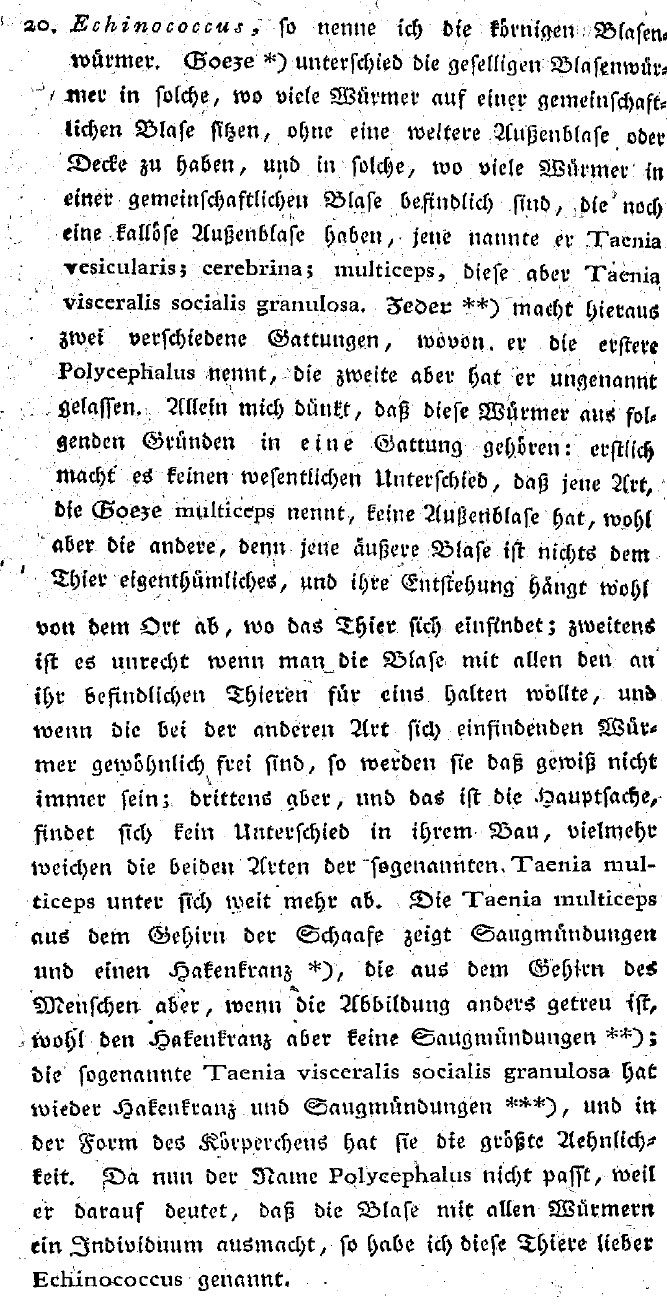 Rudolphi, K. A. 1801. Beobachtungen über die Eingeweidewürmer. Wiedemanns Archiv für Zoologie und Zootomie 2: 1-65. (5722) Download PDF |
