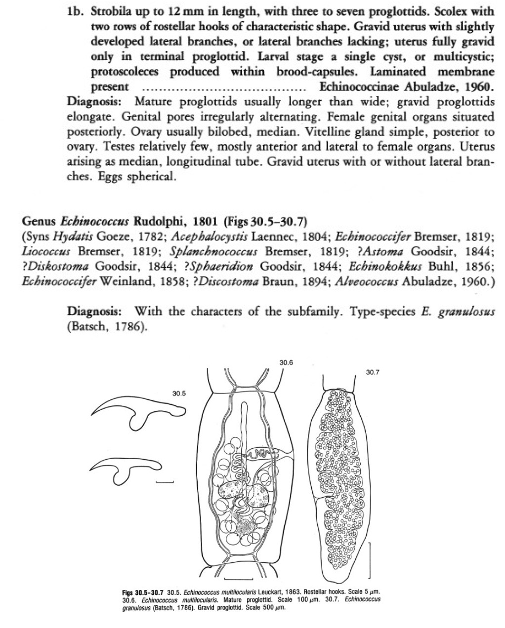 | Type Species | Echinococcus granulosus (Batsch, 1786) Rudolphi, 1801, syn. Hydatigena granulosa Batsch, 1786 |