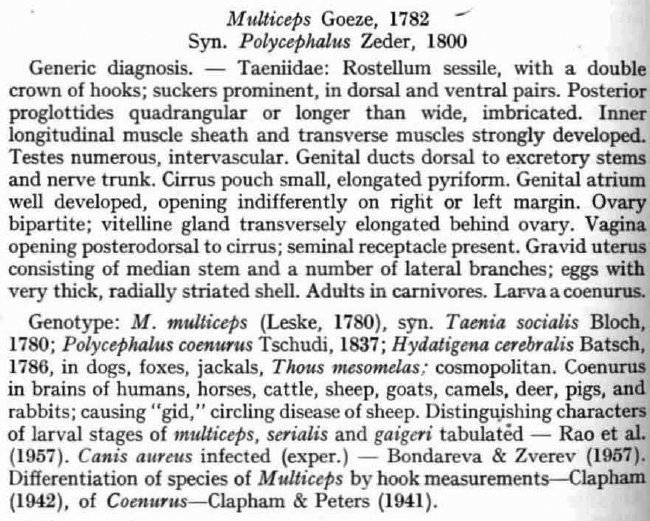 | Type Species | Multiceps multiceps (Leske, 1780) Goeze, 1782 |