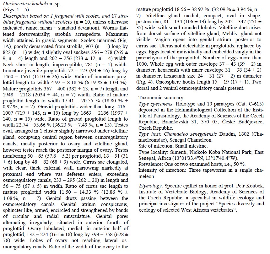 | Type Material | Type specimens: Holotype and 19 paratypes (Cat. C-615) deposited in the Helminthological Collection of the Institute of Parasitology, the Academy of Sciences of the Czech Republic, Branišovská 31, 370 05, České Budějovice, Czech Republic. |