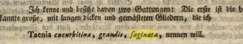 Goeze, J. A. E. 1782. Versuch einer Naturgeschichte der Eingeweidewürmer thierischer Körper. Gedruckt bey Philipp Adam Pape, Blankenburg, 471 pp & 44 plat pp. (4166) Download PDFWeinland, D. F. 1858. Human cestoides. An essay on the tapeworms of man. Metcalf and Co., Cambridge, 93 pp. (5453) Download PDF |