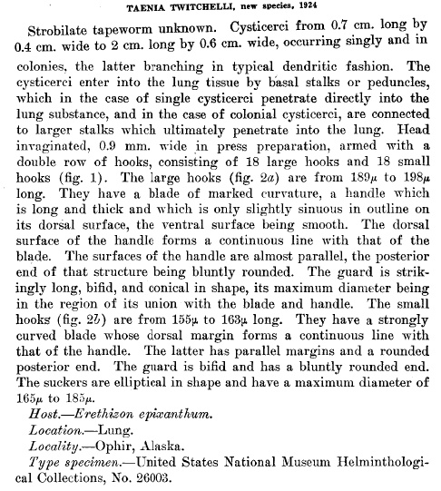 | Valid Name | Taenia twitchelli Schwartz, 1924 |