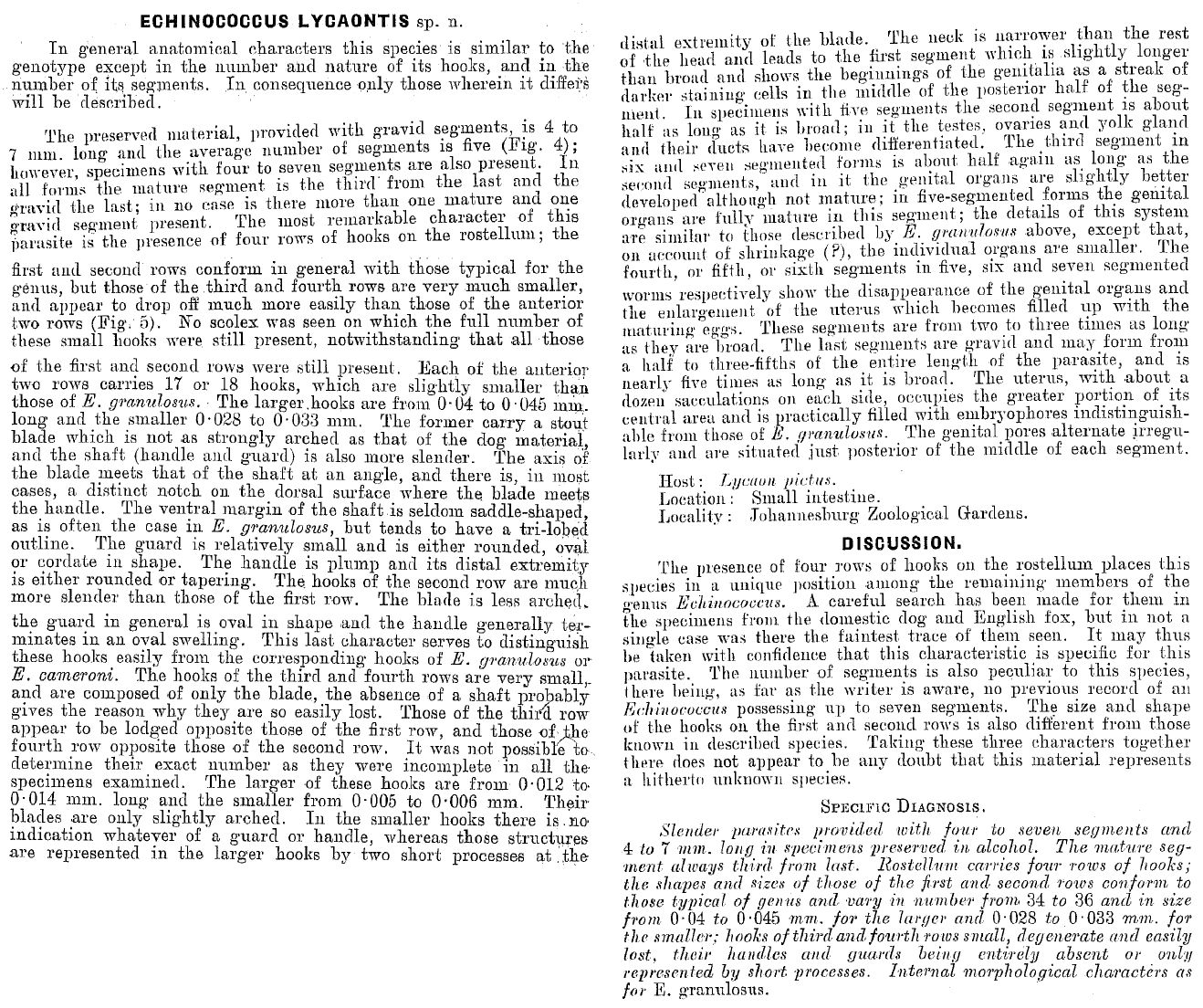 | Locality Notes | Host died in the Johannesburg Zoological Gardens . |
