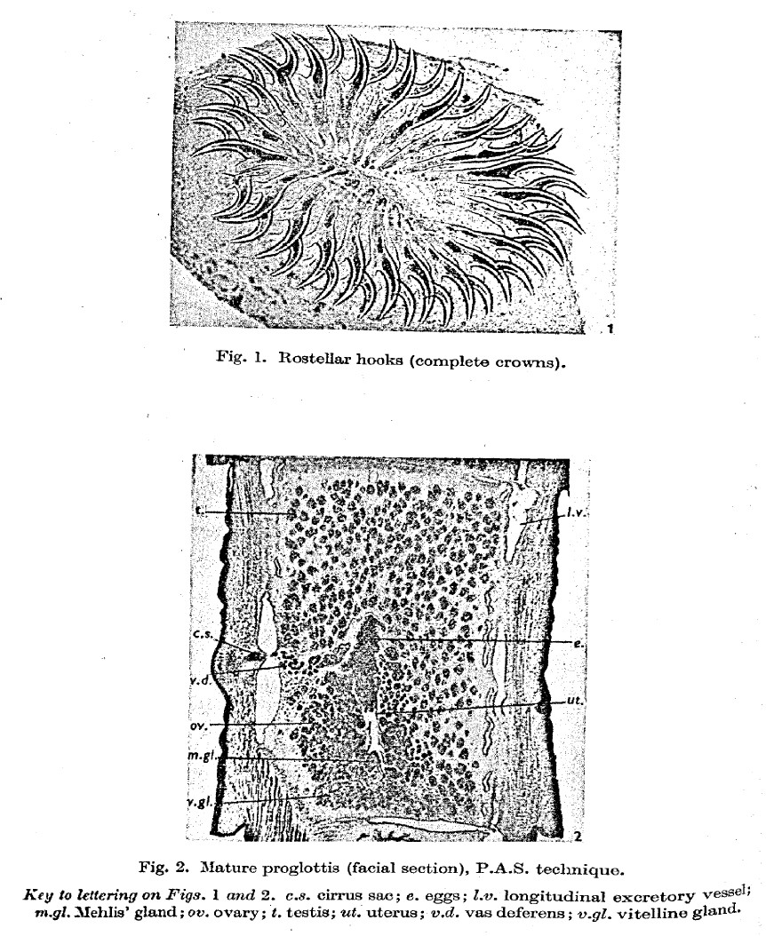 Johri, L. N. 1957. On a new cyclophyllidean cestode, Multiceps smythi n. sp., from dogs in Dublin, Eire. Parasitology 47: 16-20. (5785) Download PDFVerster, A. 1969. A taxonomic revision of the genus Taenia Linnaeus, 1758 s. str. Onderstepoort Journal of Veterinary Research 36: 3-58. (5737) Download PDF |