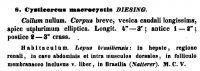| Valid Name | Taenia macrocystis (Diesing, 1850) Lühe, 1910 |