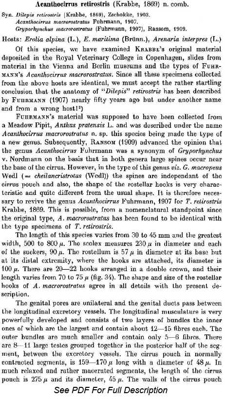 | Synonyms | Taenia retirostris Krabbe, 1869 |