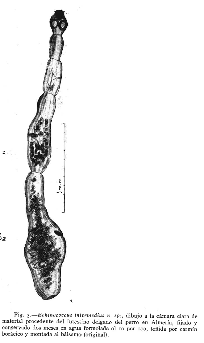 López-Neyra, C.R. and M.A. Soler Planas. 1943. Revision del genero Echinococcus Rud y descriptión de una especie nueva parárita intestinal del perro en Almería. Revista Ibérica Parasitologia 3: 169-194.