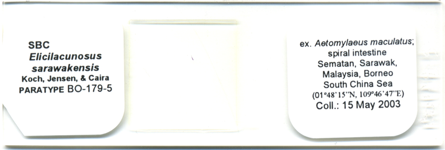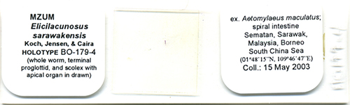 | Total Number of Type Specimens | 10 specimens: 8 whole mounts of mature worms and 2 whole worms prepared for SEM |