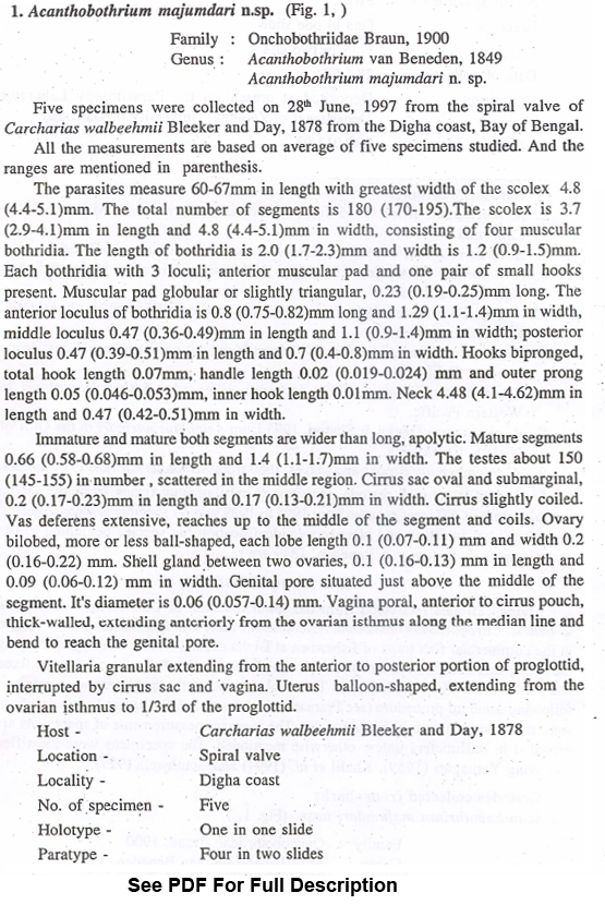 Acanthobothrium majumdari Pramanik & Manna, 2010