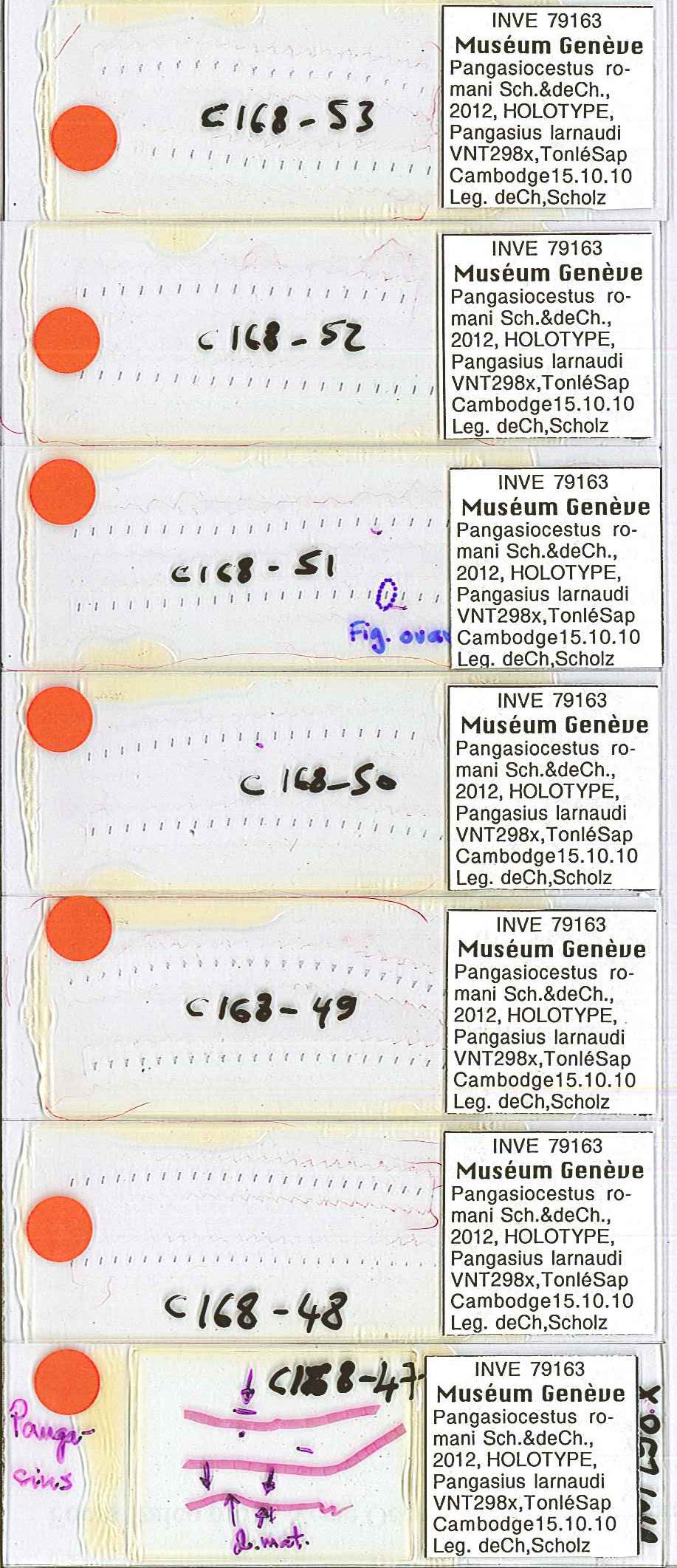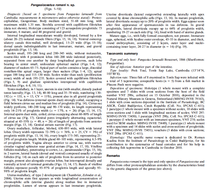 of proglottis (VNT 297; paratype: MHNG INVE 75450). (16) Cross section at level of the ovary (VNT 298x; holotype: MHNG INVE 79163). (17)